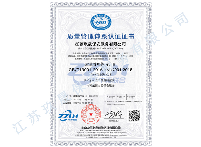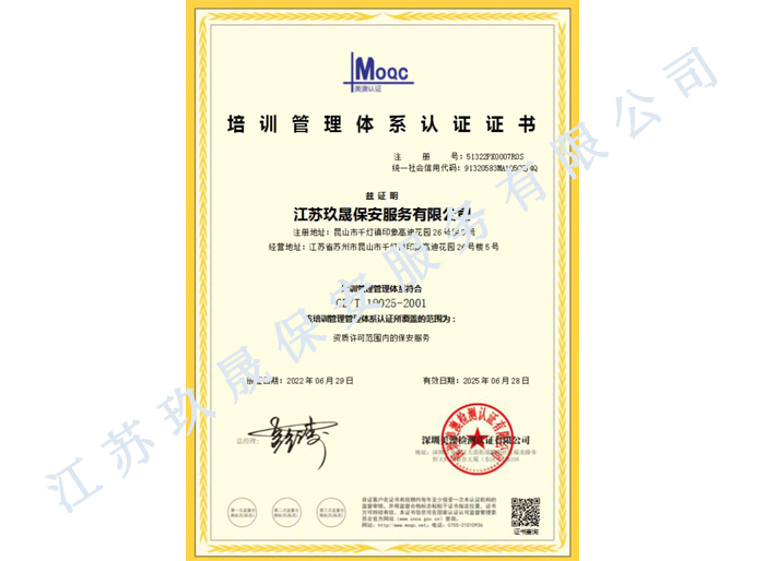 江蘇玖晟保安服務有限公司成立于江蘇省昆山市千燈鎮。注冊資金:5000萬,是擁有省公安廳頒發(fā)的保安服務許可證的企業(yè)【蘇公保服20170046】,也是昆山市保安協會常務理事單位。